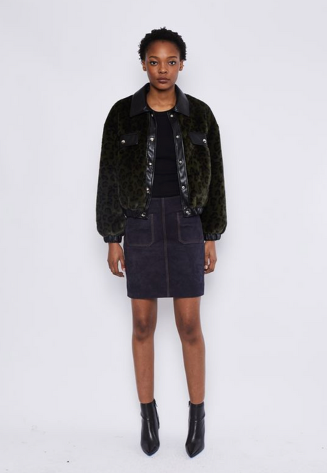 Leopard Faux Bomber Jacket in Olive